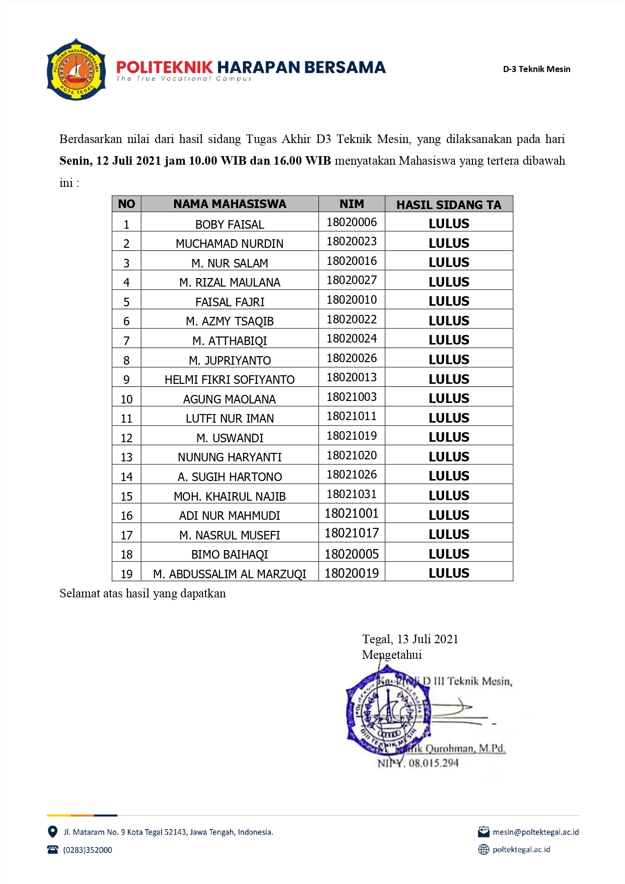 13 Juli 2021 - 12:15:08 WIB 0 Prodi D-3 Teknik Mesin