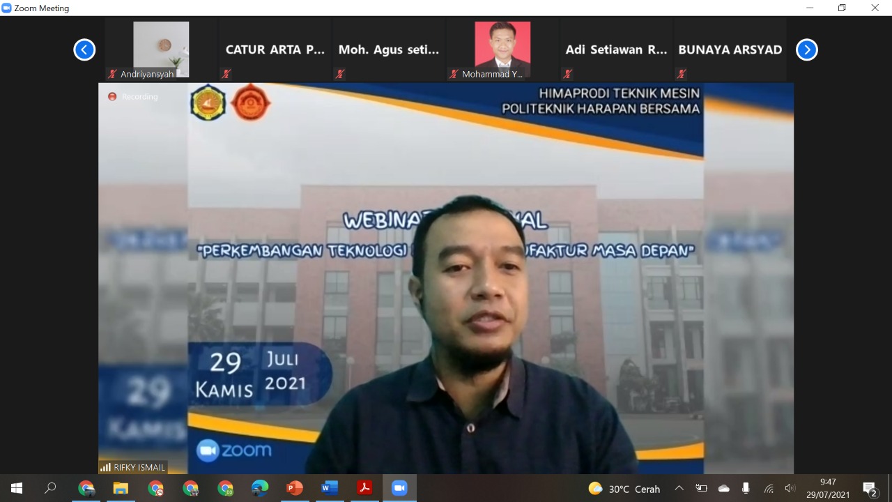 Pada tanggal 29 Juli 2021 telah berlangsung acara Seminar Nasional yang diselenggarakan oleh Himpunan Mahasiswa